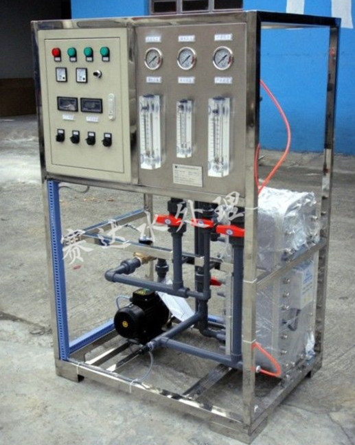 原水→原水加壓泵→多介質過濾器→活性炭過濾器→軟水器→精密過濾器→一級反滲透主機→中間水箱→中間水泵→EDI系統→微孔過濾器→用水點