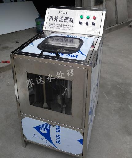 ST型刷桶機,主要是為了適應廣大礦泉水廠、純凈水廠家的需要,針對五加侖水桶內部難以清洗,且目前市場上沒有有效的清洗設備而專門研制的。該設備內洗毛刷采用我公司專利技術(專利201520425842.1)折疊式毛刷,毛刷伸到桶里面以后張開,隨著毛刷轉動,就可以把里面洗干凈。它能有效清洗水桶內部,尤其是對大桶內壁各部位污垢特別是對綠苔有很好的清洗效果,是大桶水必不可缺少的預處理設備。